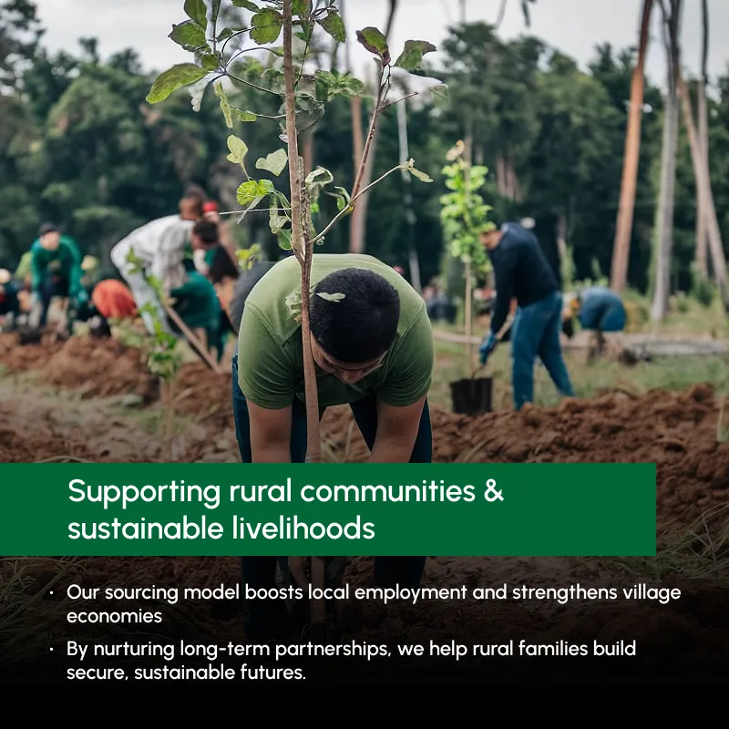 • Our sourcing model boosts local employment and strengthens village economies.