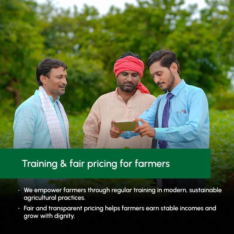 • Fair and transparent pricing helps farmers earn stable incomes and grow with dignity.